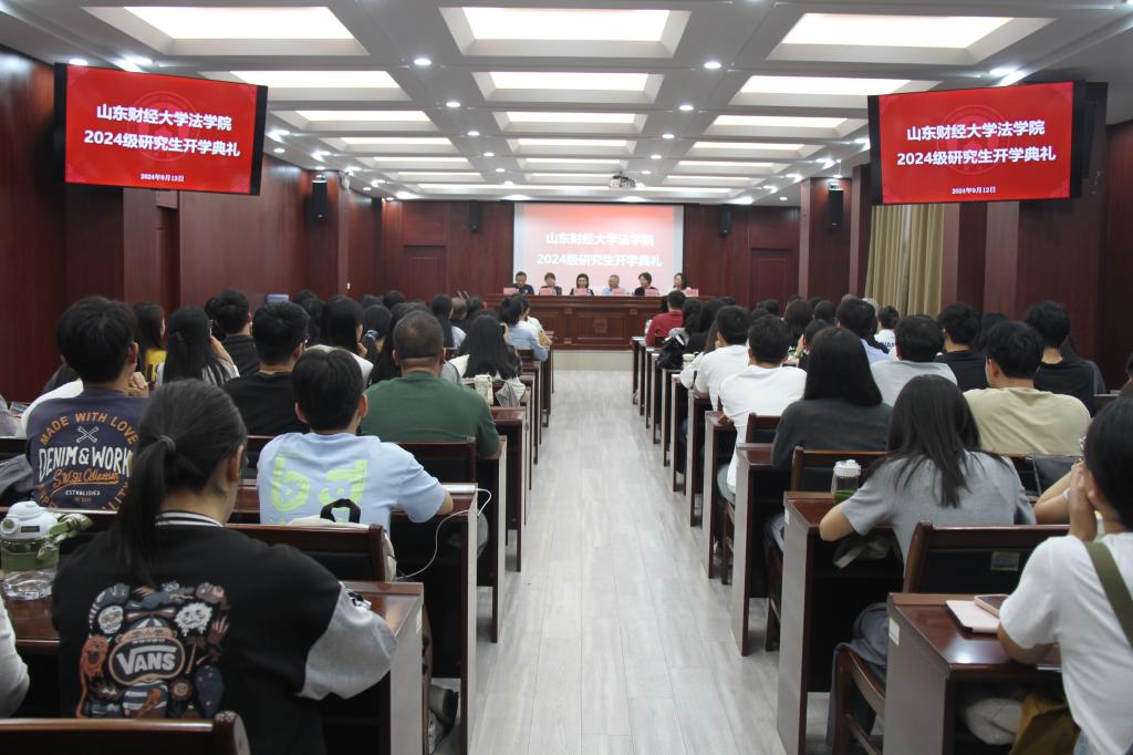 2024级研究生新生开学典礼在燕山校区模拟法庭举行。学院党委书记危红、院长赵信会、党委副书记沙林斌、副院长纪建文、副院长王莉莉、硕士生导师徐丽枝以及全体2024级研究生新生共同出席典礼。典礼由党委副书记沙林斌主持。开学典礼在庄严激昂的国歌声中拉开序幕。
