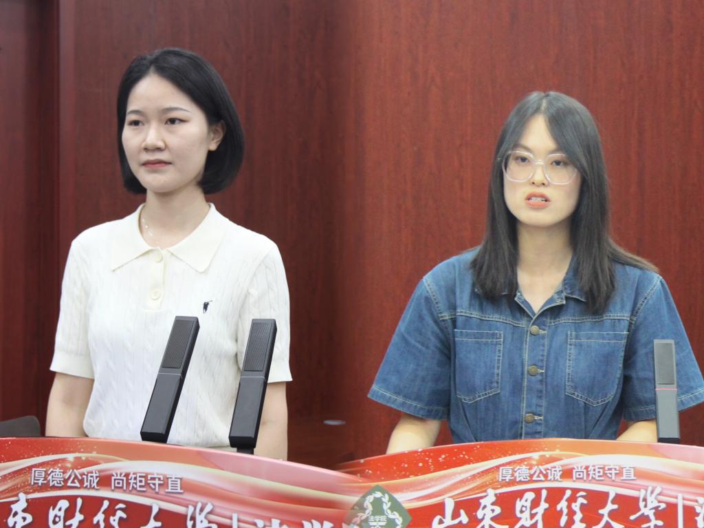 老生代表2023级法律(非法学)班赵文秀同学发言。她结合自己的求学经历,分享自己的成长感悟。鼓励广大新同学明确目标,坚韧求进,立德修身,胸怀家国责任,练就过硬本领,为国家民族贡献青春力量。新生代表2024级法学学硕班的郝雪同学发言。她代表全体新生表达了对学院和老师的感谢,并倡导全体新同学心怀感恩,勇毅前行,成为新时代有温度有担当的法律人。