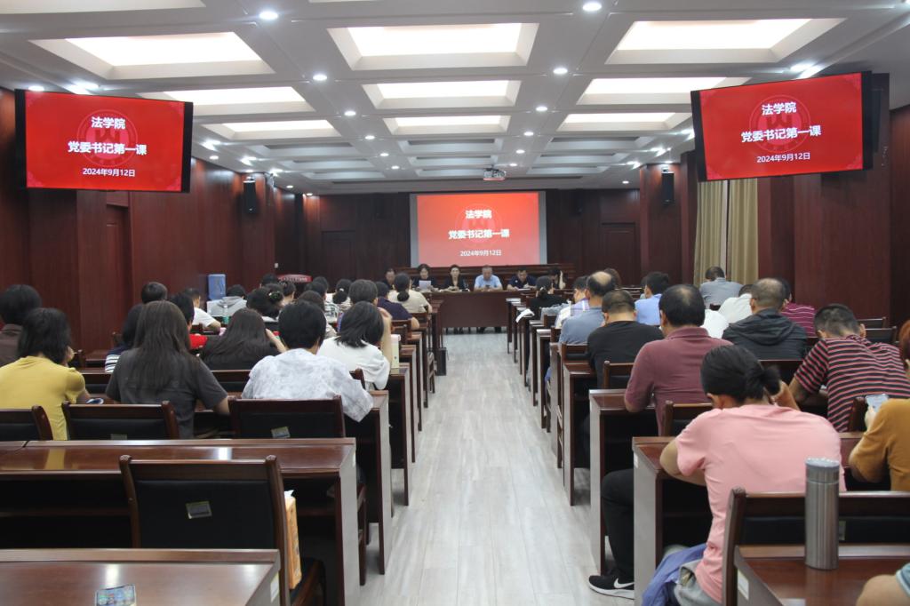 在燕山校区模拟法庭召开学习贯彻党的二十届三中全会精神暨全体教职工大会。学院党委书记危红、院长赵信会及班子成员、全体教师参加会议。会议由党委书记危红主持。