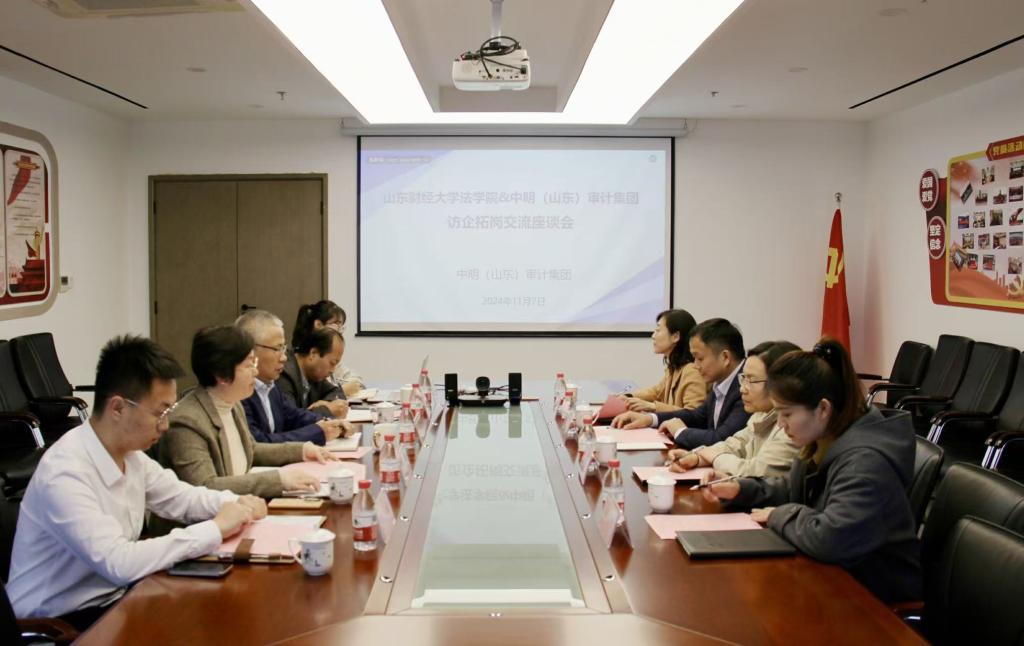 党委副书记沙林斌、党委委员刘晓莉、就业办主任郭蕾和党委专职组织员杨玉霜一行赴中明(山东)审计集团开展“访企拓岗促就业”活动。中明(山东)审计集团董事长巴树青、副总经理谷毓、业务发展培训部主任王燕琳、总部管理办公室副主任单搏和业务发展培训部副主任王青热情接待并与会座谈。