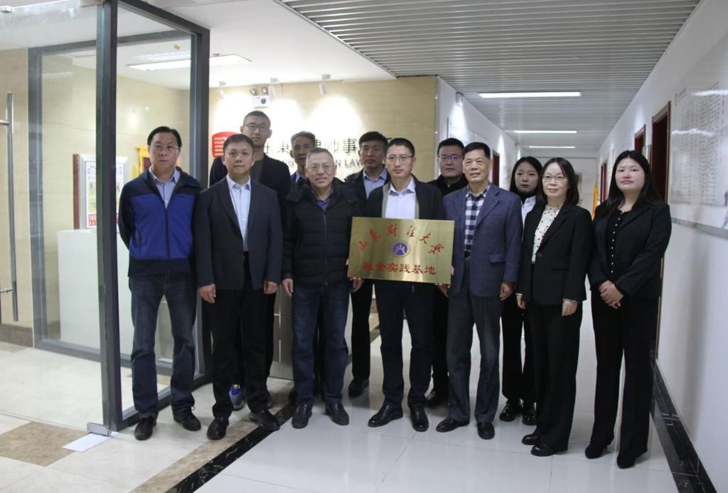 刘涛带领赵信会一行参观律所建设情况,了解律所文化与业务组织架构,随后,院所领导共同为实践教育基地揭牌,并合影留念。
