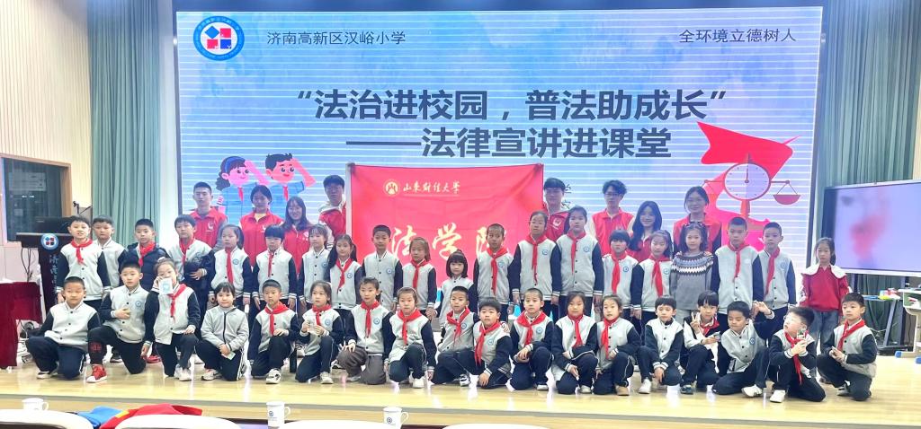 党委副书记沙林斌、党委组织员杨玉霜、辅导员殷浩松,带领大学生法律援助中心团队赴济南高新区汉峪小学开展了一场意义非凡的学雷锋志愿普法活动。此次活动紧扣“学雷锋”主题,将法治教育与志愿服务有机结合,推动法治教育进校园,为青少年健康成长筑牢法律屏障。