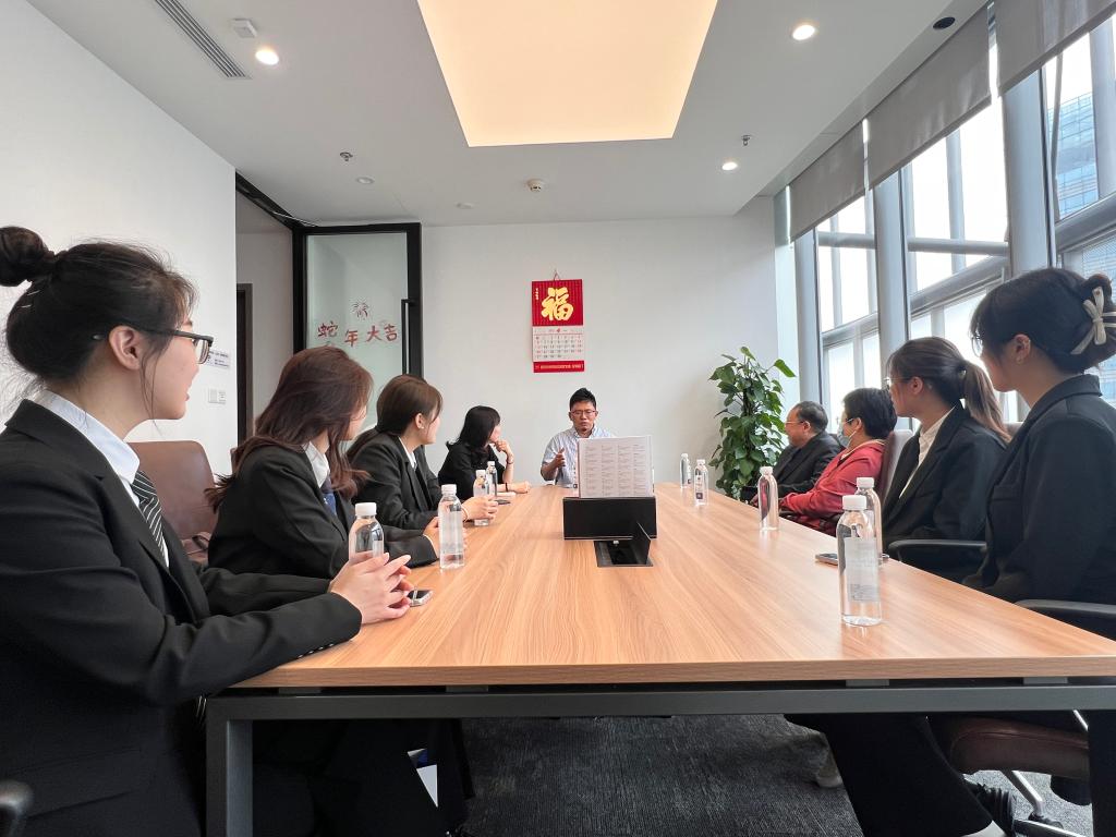 在座谈交流环节,宋晓阳深情回顾了在山财大的求学往事;对母校老师的殷切关怀表示感谢;针对目前毕业生的就业情况和面临的挑战与机遇,言恳意切的分享了自己的成长历程和求职经验。孟凡麟老师则代表母校对宋晓阳校友的卓越成长表示鼓励。郭蕾老师做总结发言,对长期以来关心和支持学院发展的校友朋友表示衷心感谢。会后,宋晓阳带领学院一行参观考察律所常务工作。