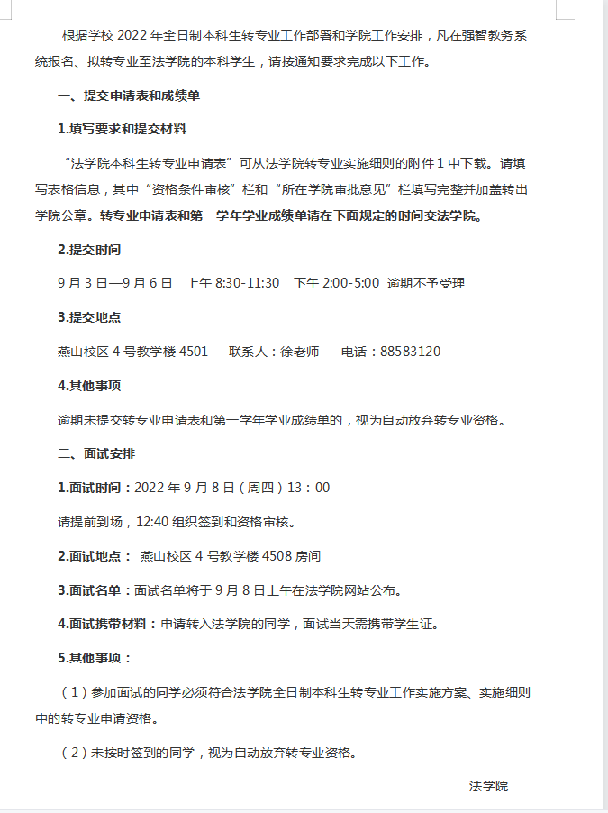 2022年色色视频 全日制本科生转专业交表、成绩单及面试安排
