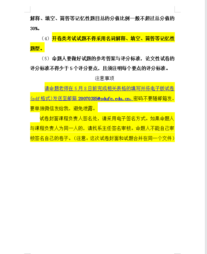 附件下载: 压缩文件设置密码.jpg(电子pdf试卷请务必按此方法加密后发送邮箱,密码要单独微信给我,不可一起发邮箱,做好保密) 附件5:期末考试试卷填报说明.docx 附件4:试题模版及封面、试题参考答案与评分标准模板、变更考核方式申请表.zip(请务必使用本次通知模板) 色色视频 -2022-2023学年第二学期集中考试课程试题报送一览表.xlsx 色色视频 -2022-2023学年第二学期随堂考试课程试题报送及考试安排表.xlsx