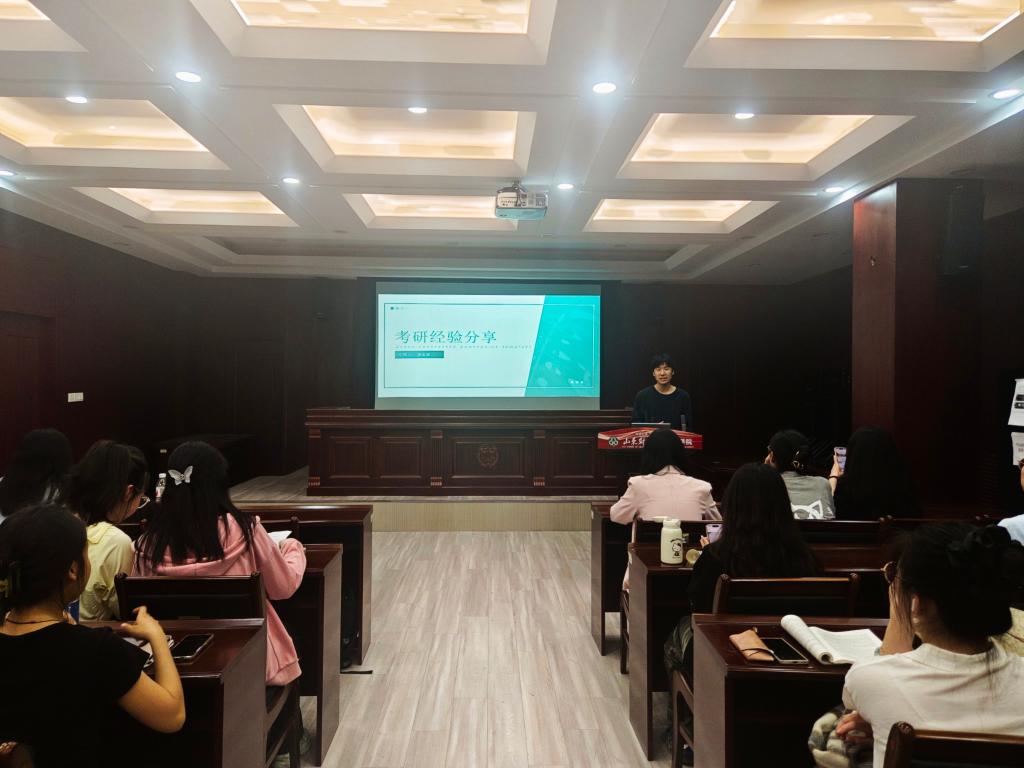 会议中八位优秀的毕业生分别向学弟学妹们分享了考研备考的规划安排、复习方法、心态调整等方面的经验,强调了熟读背诵、理解记忆的重要性。每位分享人介绍了他们择校的经历,建议大家通过自己的喜好城市、能力水平来进行择校,激励大家备考过程要坚持到底。此外,他们还从真题、笔记以及听课老师等几方面给大家提供参考,为在座的同学提供了学习思路。其中几位分享人还向大家介绍了复试经历,鼓励大家要坚持到最后一刻,相信自己的能力,一战成硕。