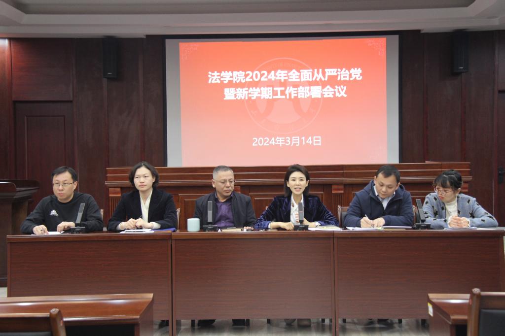 在燕山校区模拟法庭召开2024年全面从严治党暨新学期工作部署会议。学院领导班子及全体教职工参加,学院党委书记危红主持会议。
