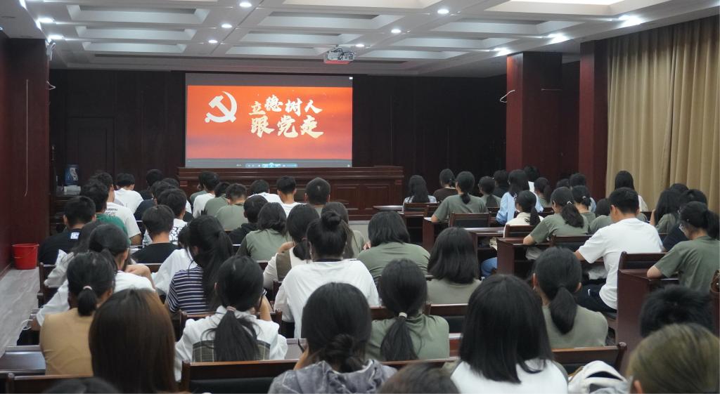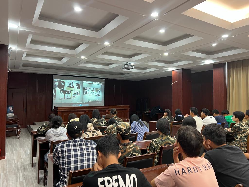 于9月24日在模拟法庭组织全体2023级新生观看思政专题片《立德树人跟党走》。