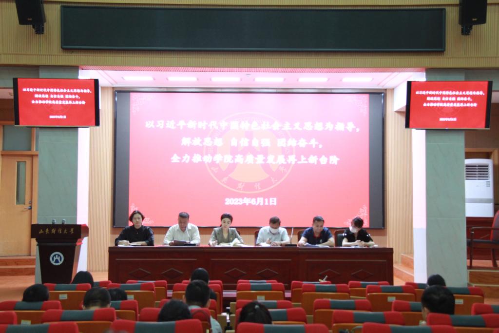 在燕山校区三号报告厅召开全体教职工大会。学习传达学校主题教育推进会议精神,统一思想,凝聚发展共识,学院领导班子及全体教职工参会,学院党委书记危红主持会议。