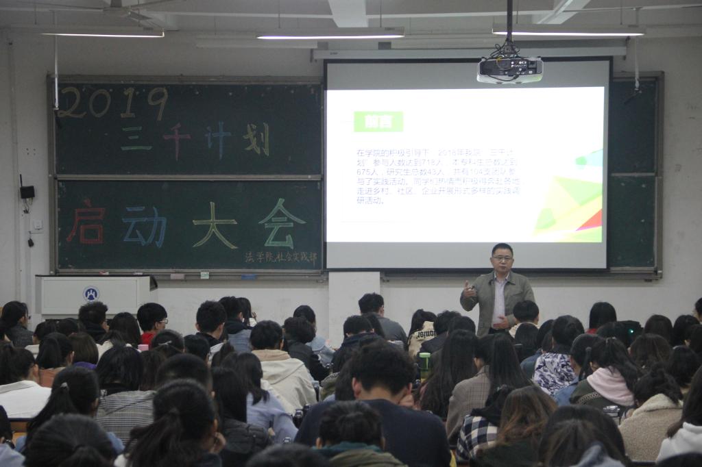 在圣井校区B1108室举行“三千计划”社会实践启动仪式。学院党委书记邵文涛、辅导员刘天姿、赵金鹏以及2018级全体同学参加。