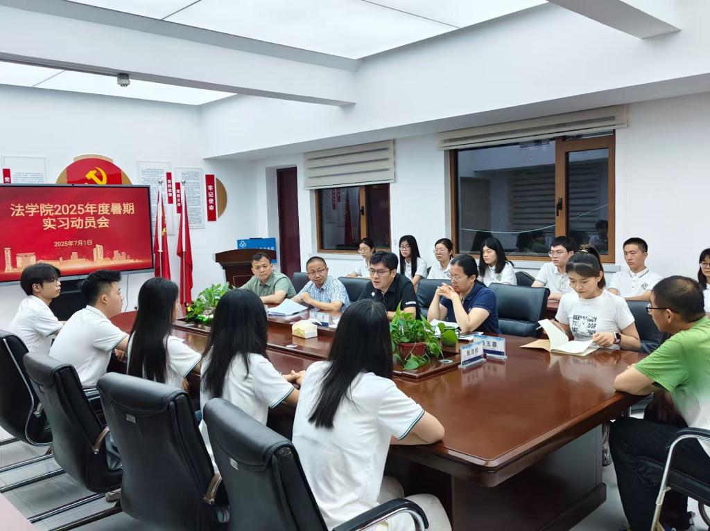 2025年学生暑期实习动员会在燕山校区6号楼325会议室举行。学院党委书记刘洪,党委副书记陶晓华、党委副书记沙林斌,副院长王仰光,23级辅导员杨玉霜,22级辅导员殷浩松以及参加实习的23名同学参加会议,会议由沙林斌主持。