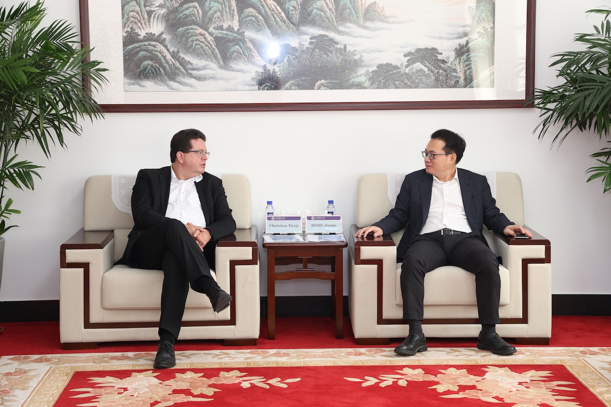 9月18日,德国马丁·路德·哈勒-维腾贝格大学原校长、法学教授铁可安(Christian Tietje)一行访问我校。校长洪俊杰会见了代表团一行,并举行座谈。