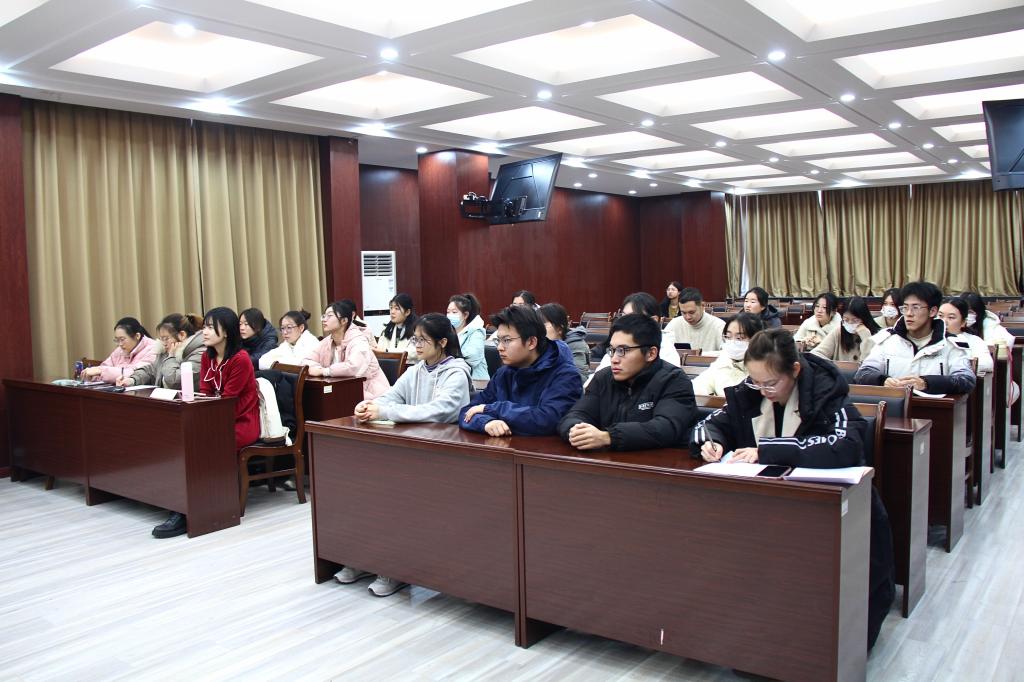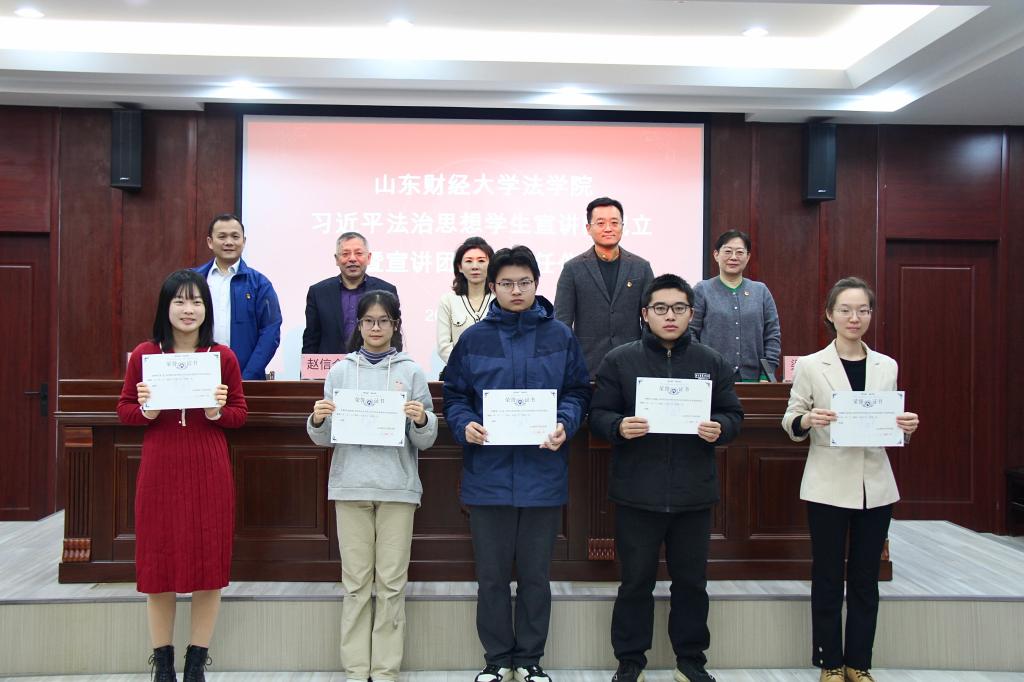 成立习近平法治思想学生宣讲团表示热烈祝贺并对宣讲团的工作提出两点期望:一是希望同学们认真学习,向老师认真请教,学懂贯通习近平法治思想;二是凝聚集体智慧,开展集体备课,用人民群众喜闻乐见的方式宣传习近平法治思想。