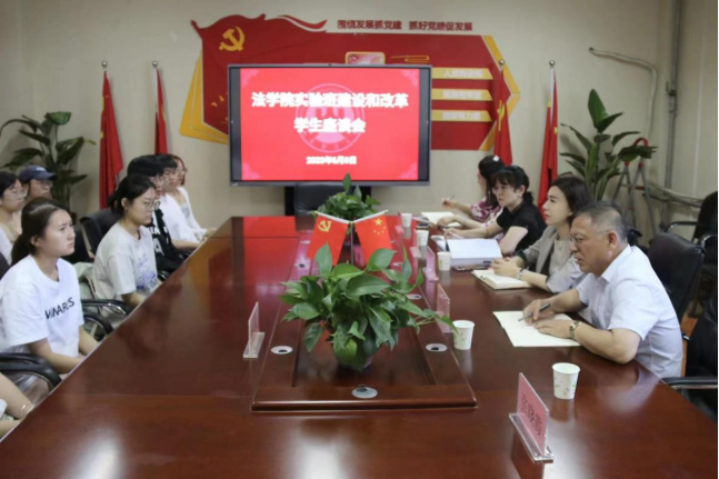 座谈会上,学生代表就实验班的课程设置、课程学习、学业规划等方面进行踊跃发言。针对学生们提出的意见和建议,副院长王莉莉进行了详尽的解释和说明,并表示后续学院将进一步梳理、研究、解决相关问题,为全面提升法学特色人才培养质量奠定基础。