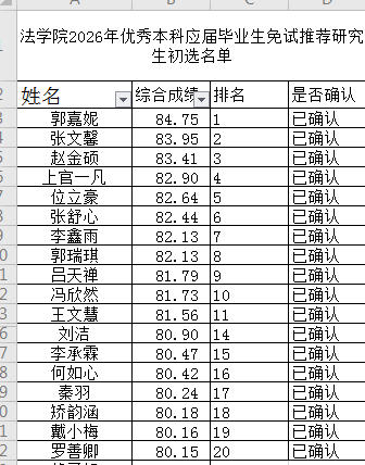 色色视频 2026年优秀本科应届毕业生免试推荐研究生初选名单