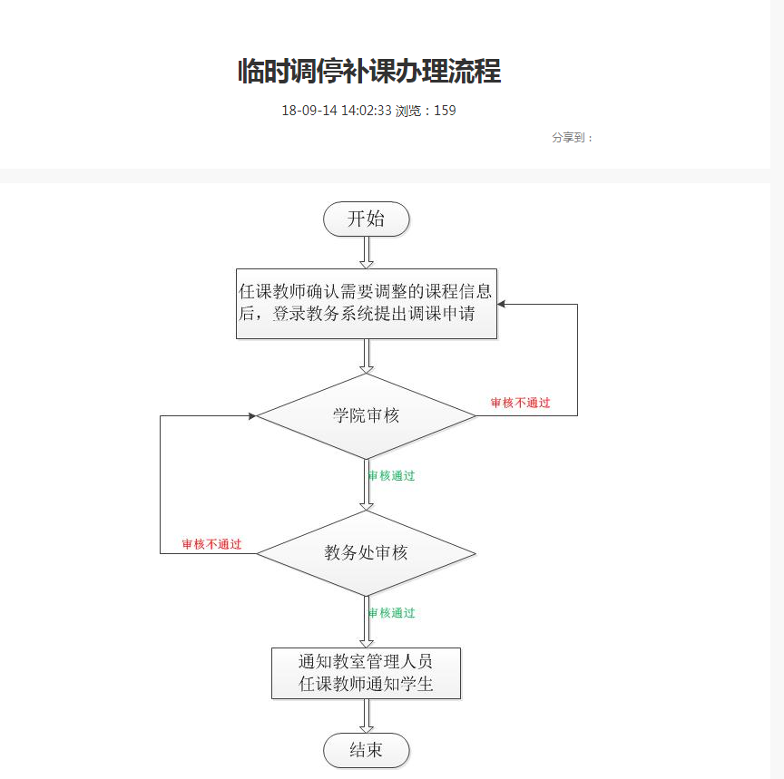 5、通常情况下,要提前两天在系统申请调课;情况特殊的,可以事后补办,但要及时向学院和教务处报告。私自调课、停课或调停课后再办理手续者,按教学事故处理。