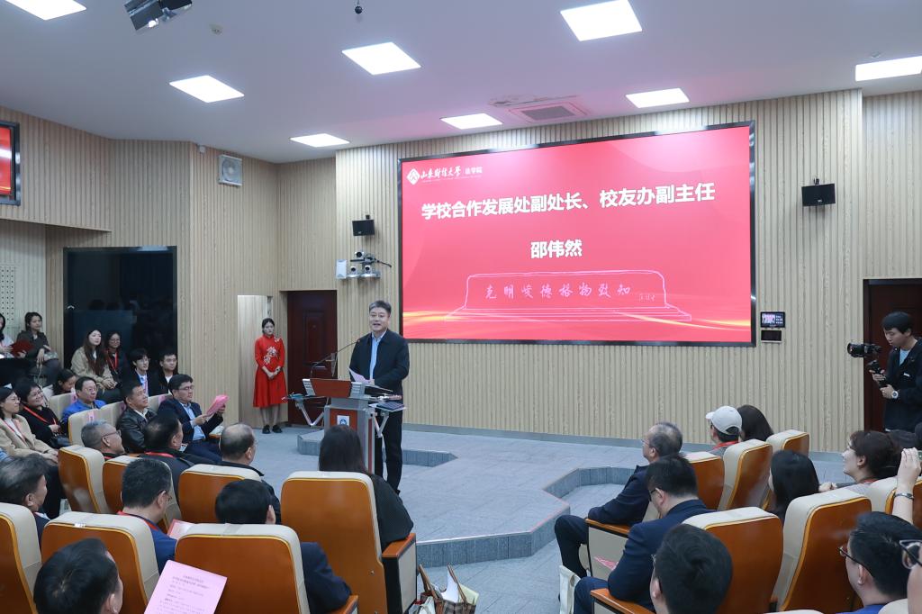 校友分会负责人及就业导师代表颁发了聘书。校友杨凯、李殿涛、孙京祥依次发言,他们深情回忆了在母校的求学岁月,表达了对恩师的感激和对母校的祝福,并表示将积极支持校友会工作,为母校和学院的发展贡献力量。大会还宣读了上海校友会、苏州校友会、临沂校友会的贺信,并播放了来自全国各地校友的祝福视频。